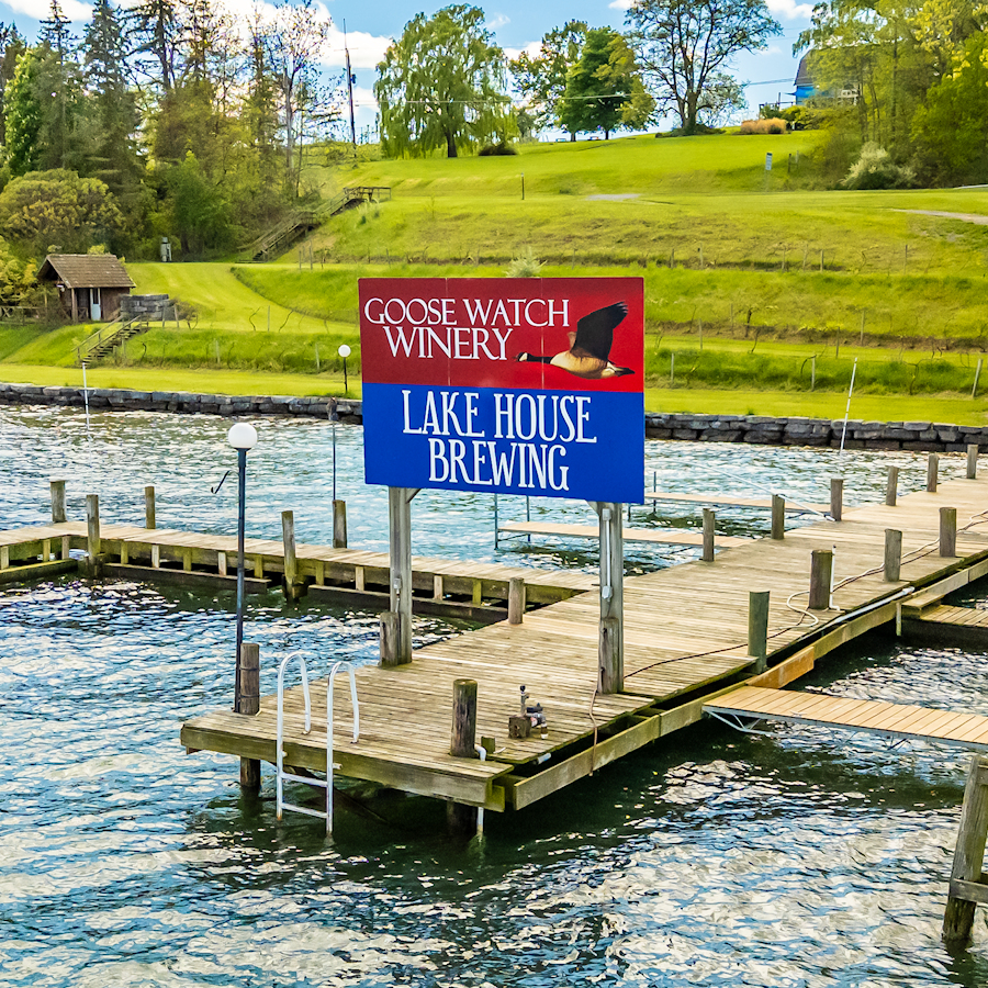 Visit us by car or boat! We are one of the few breweries on Cayuga Lake accessible by water. Dock your boat with us and enjoy the lake cottage-inspired atmosphere of our beautiful location. We are the perfect stop for craft beer and wine lovers alike as we share our property with Goose Watch Winery.